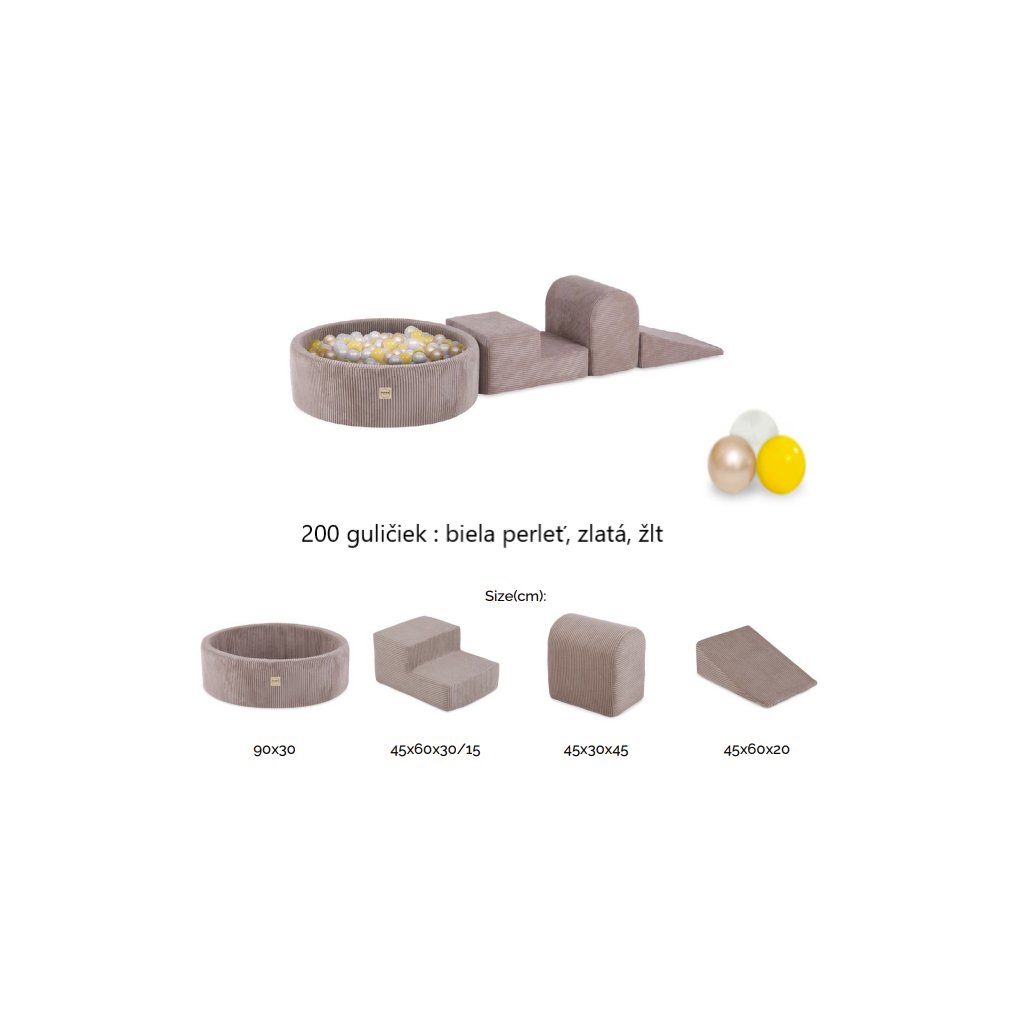 Dětské pěnové hřiště béžové manšestrové + bazén + 200 kuliček