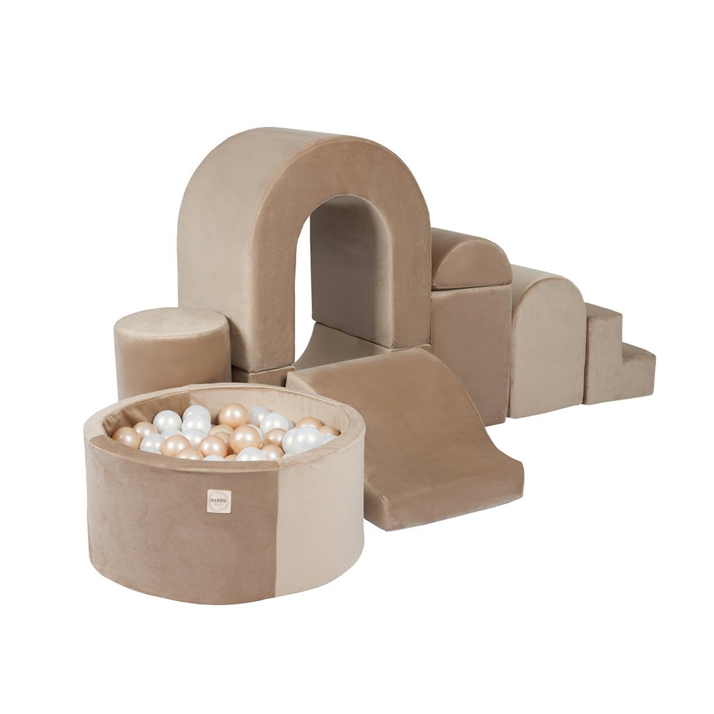 Dětské pěnové hřiště zámek s bazénem béžové 150 kuliček