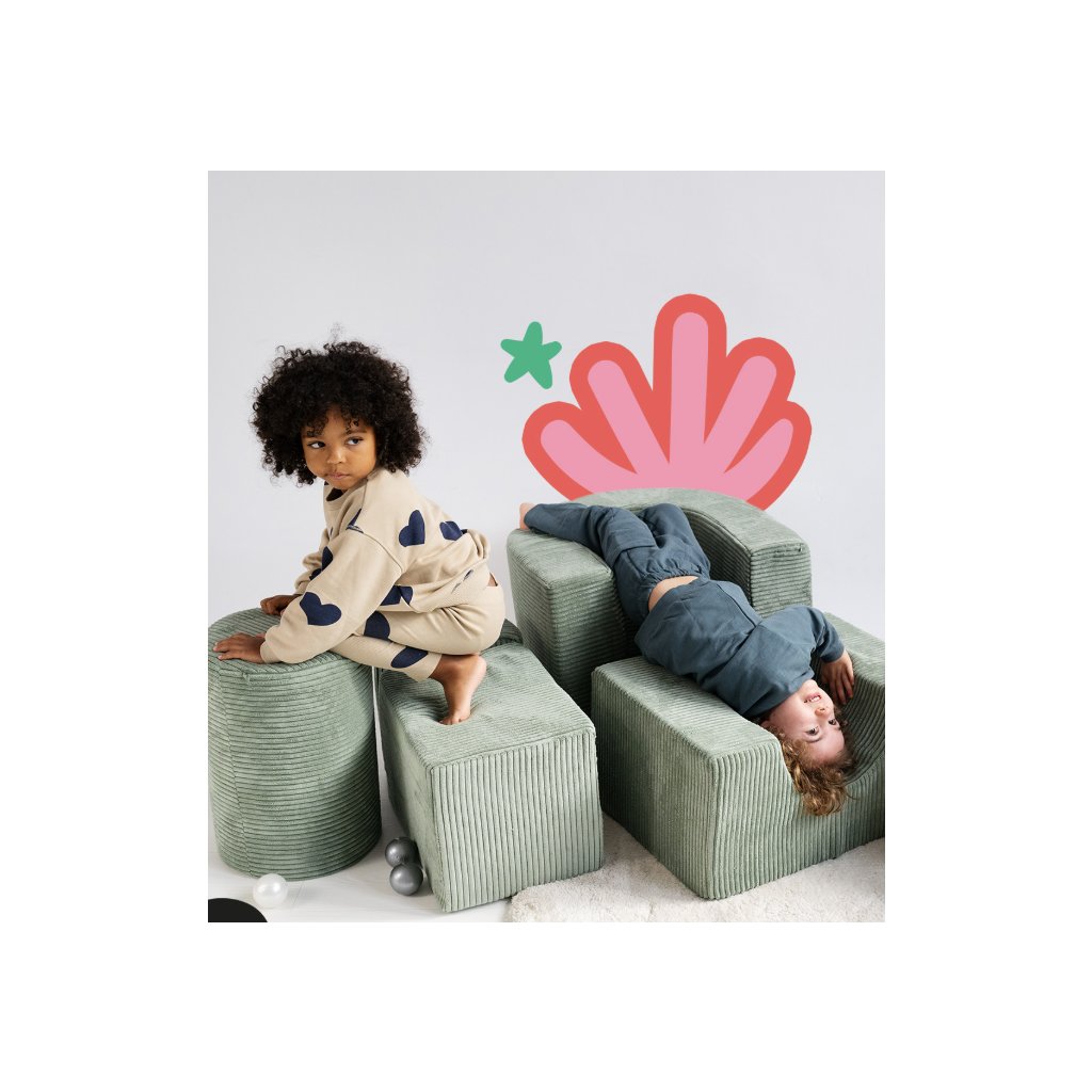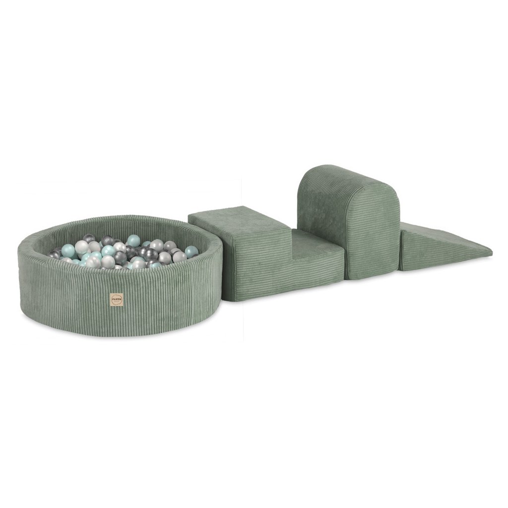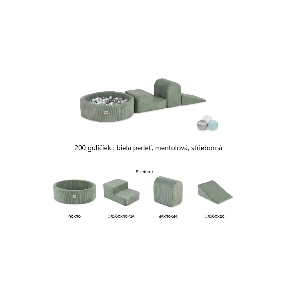Dětské pěnové hřiště zelené manšestrové + bazén + 200 kuliček