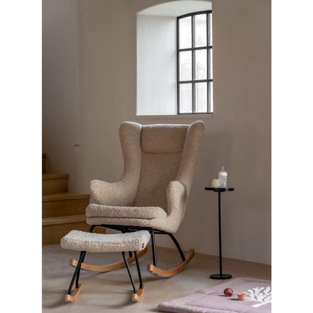 Vytvořte si domov plný něhy se značkou Quax. Houpací podnožka (taburet) z hřejivé kolekce De Luxe Teddy Sheep je stvořena jako nepostradatelný partner k vašemu křeslu. Přináší vytouženou úlevu unaveným nohám a svým světlým, nadýchaným vzhledem rozzáří interiér každého dětského pokoje. Díky plynulému houpání v rytmu křesla poskytuje ideální prostředí pro nerušenou blízkost s miminkem při krmení či uspávání.