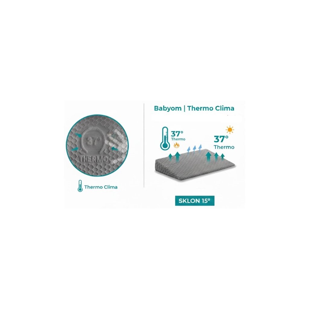 Antirefluxní polštář Thermo Clima přináší revoluční péči o spánek vašeho miminka. Kombinuje technologii Thermo Comfort Cell Solution® Clima s přírodními Tencel® vlákny a PCM kapslemi, které efektivně regulují teplotu, minimalizují pocení a zajišťují zdravý a klidný spánek během každé procházky či odpočinku.