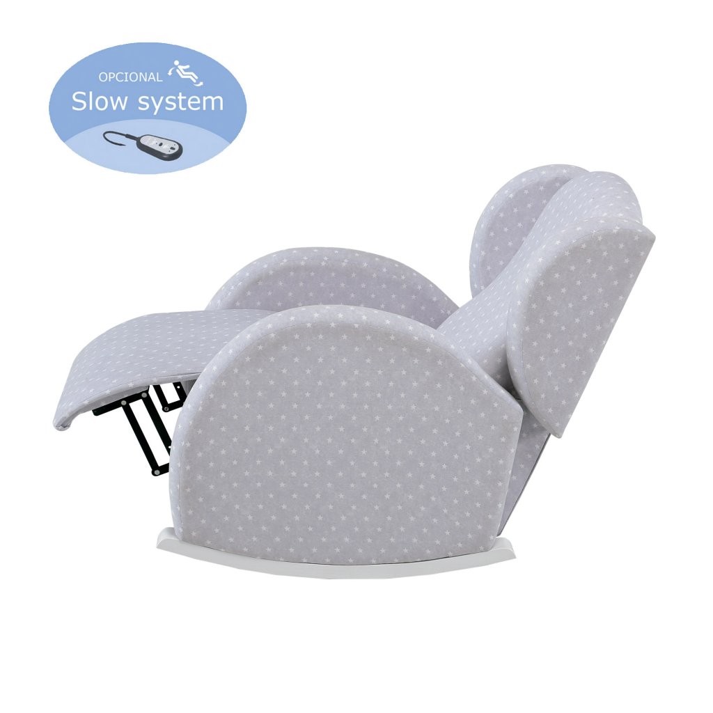 Těhotenství a první měsíce života miminka jsou časem, kdy je důležité dopřát si pohodlí. Houpací křeslo s SLOW SYSTEM umožňuje jemné naklonění do tří pohodlných poloh a usnadňuje relaxaci maminky i uspávání dítěte. Ovládání je tiché a jednoduché, se zabudovaným USB portem pro mobil nebo lampičku.