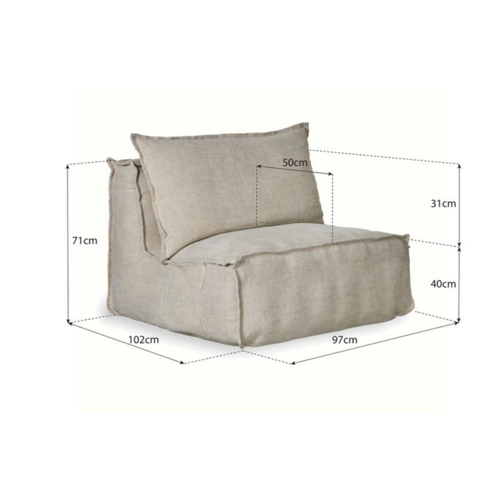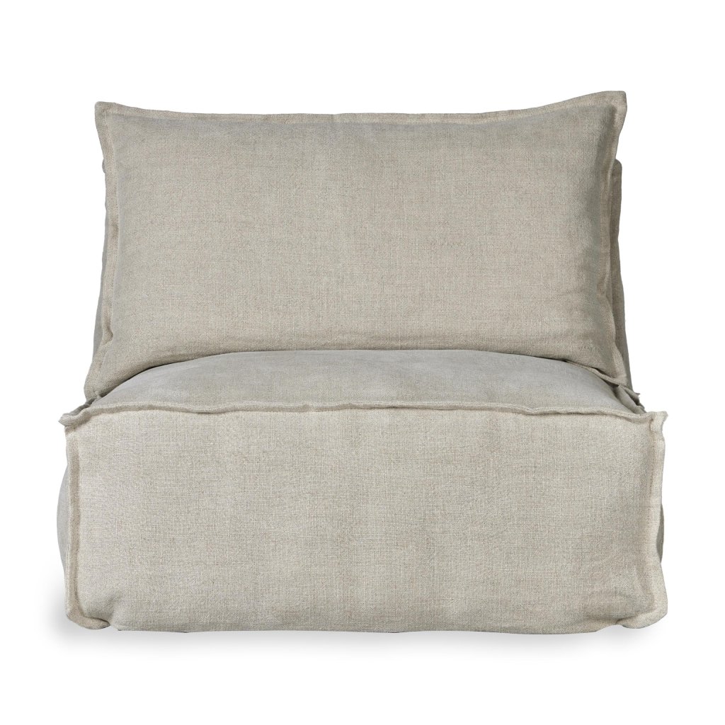 Jeho velkorysý tvar, měkký nadměrný polštář a jemný lněný potah vytvářejí objímající pocit bezpečí a komfortu, který si zamilujete od prvního posazení.
