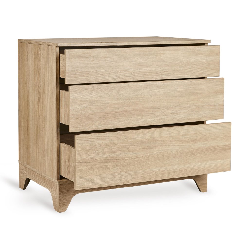 Tři bezúchytkové zásuvky s push-to-open systémem se otevírají lehkým stiskem a nabízejí velkorysý úložný prostor. Díky tomu máte vše potřebné vždy po ruce – od plen až po oblečení a kosmetiku. Dětská Komoda Tsugi je navržena tak, aby usnadnila každodenní péči o dítě a zároveň působila klidně, čistě a nadčasově.