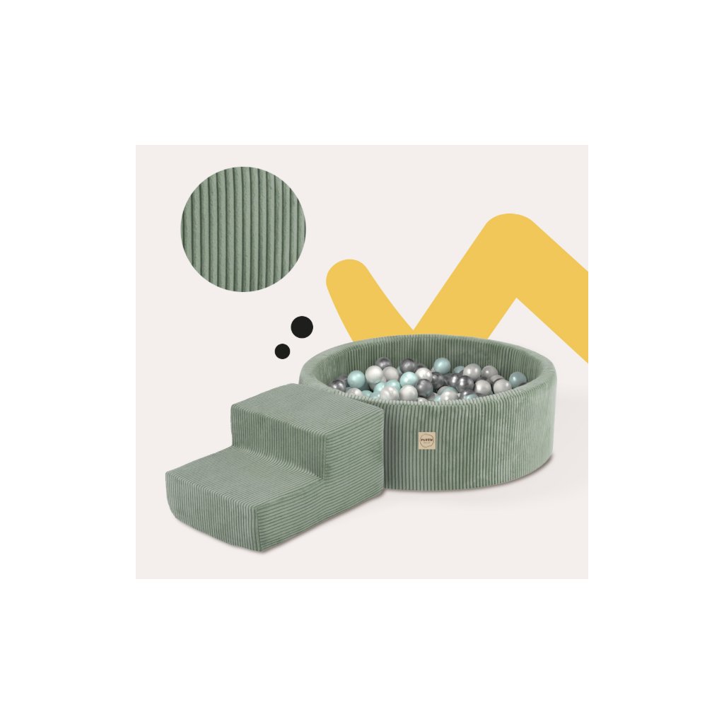Suchý bazén se schůdky manšestrový + 200 míčků zelený +200 kuliček